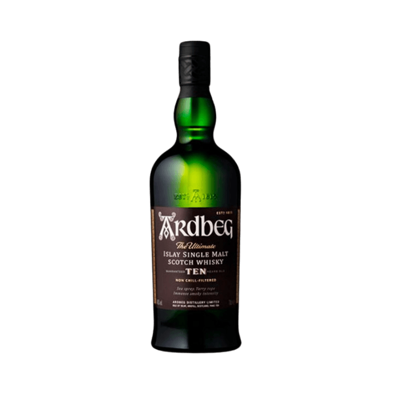 Ardbeg 10 Años Whisky 70cl, destaca por su perfil ahumado y turba intensa, y se elabora utilizando métodos tradicionales que honran siglos de destilería escocesa. Con un proceso de maduración cuidadoso en barricas de roble ex-bourbon, este whisky presenta notas distintivas de humo, cítricos frescos y un toque de dulce vainilla, permitiendo que cada sorbo revele una complejidad sin igual.