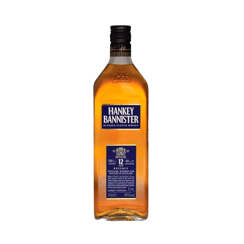 Hankey Bannister Blended fue elaborado inicialmente por Beaumont Hankey y Hugh Bannister para su selecta clientela, que incluía a los príncipes William IV y George V. Tras 12 años de maduración en barricas de ex-bourbon americanas y de Jerez, esta excepcional mezcla de whiskies de las Highlands y las Lowlands se combina de manera magistral para ofrecer un sabor dulce, suave a vainilla y con un ligero toque ahumado. Presenta una elegancia en nariz y una textura densa y cremosa en boca, tal como se espera de un gran blended de alta gama. Su hábitat natural es un vaso ancho con una piedra de hielo, a menos que forme parte de un cóctel premium.